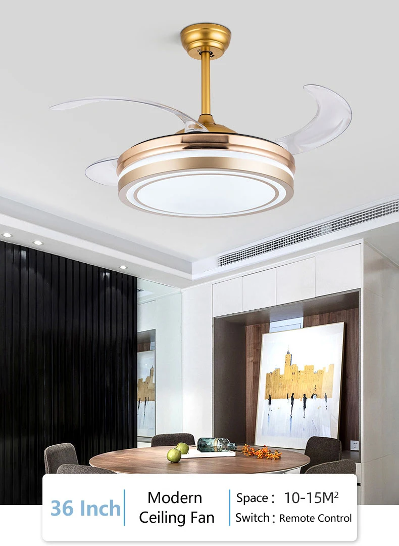 42 Inch Retractable Ceilling Fan 3 Blade Invisible Modern Smart Ceilling Fan With Light and Remote Control