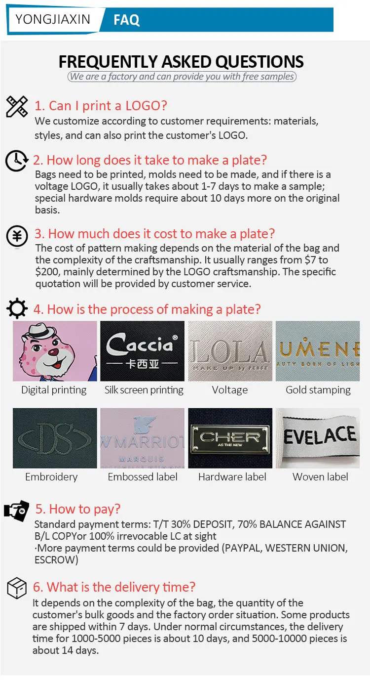 1. Free design2. MOQ:1 piece can be customized (size+logo+color + craftsmanship+...)