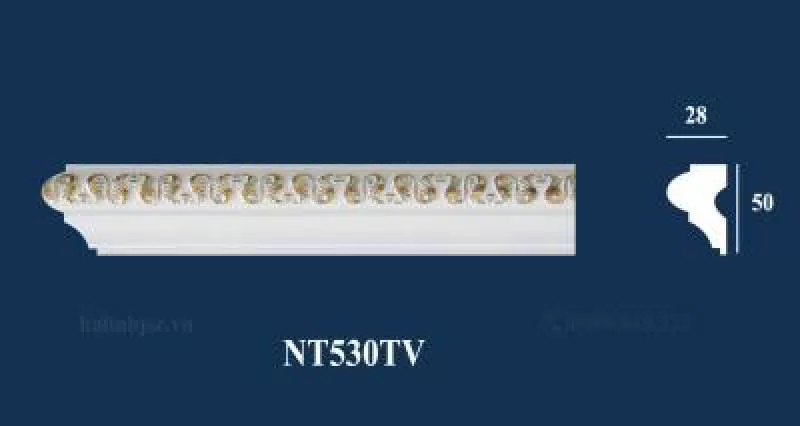 Phào chỉ nẹp tường PS trắng hoa văn vàng NT530TV