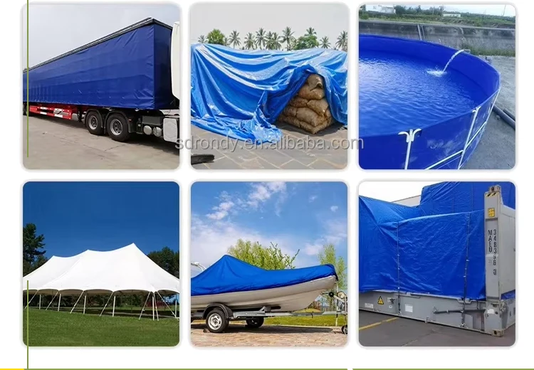 PVC coated tarpaulin is widely used in various scenarios, such as truck cargo covers, warehouse protection, outdoor tent manufacturing, construction site dust isolation, temporary sunshades, and advertising banners. Its excellent waterproof, UV-resistant, and wear-resistant properties make it highly effective in transportation, logistics, construction, agriculture, and outdoor activities. Additionally, PVC coated tarpaulin is suitable for extreme weather conditions, providing comprehensive protection for goods. It also supports customization in size and color to meet diverse application requirements.