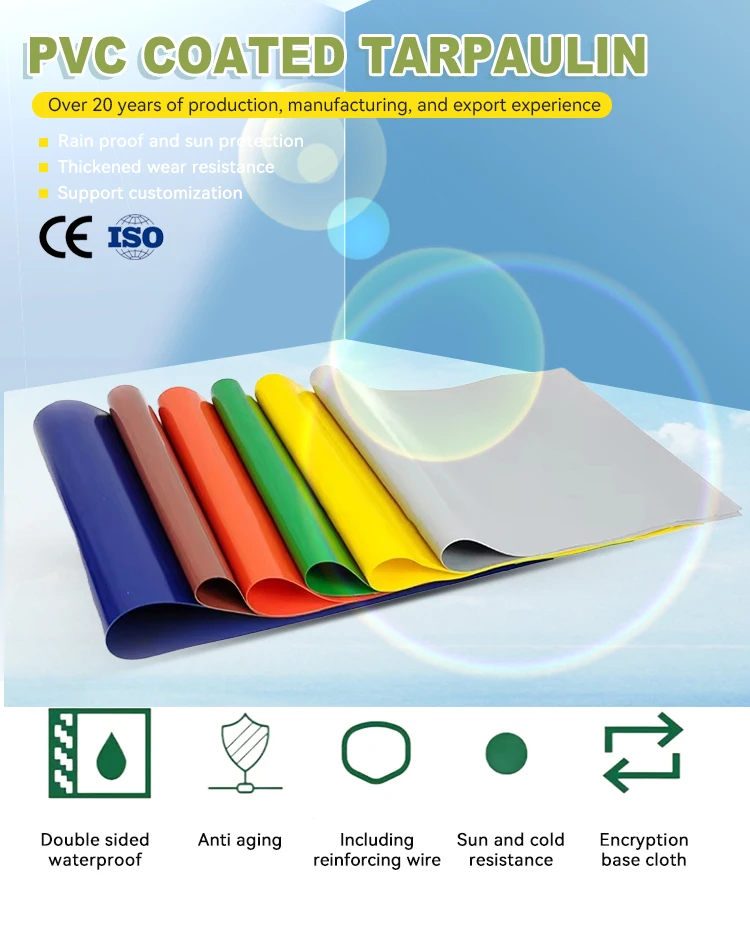 PVC coated tarpaulin is a high-strength, durable, and waterproof multi-functional material. It is made with premium polyester fabric as the base, coated with a layer of polyvinyl chloride (PVC) on the surface, offering excellent UV resistance, aging resistance, and temperature tolerance in both cold and hot conditions. This product is ideal for truck covers, cargo protection, tent manufacturing, outdoor advertising, and construction site shielding. Available in various colors and customizable sizes, it is easy to clean, reusable, and suitable for demanding environments.
