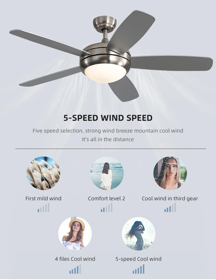 42 Inch Retractable Indoor Decorative Ceiling Fan Reversible Dc Motor Ceiling Fan With Light and Remote Control
