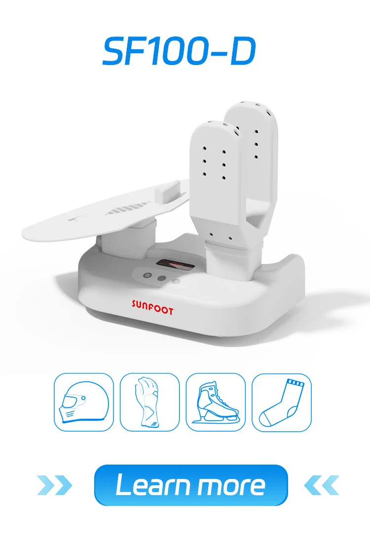 Sunfoot is born to care our feet health and that will give us a lifetime benefit. The Sunfoot Shoes Dryer is a very unique piece of the Sunfoot family. It efficiently kills the bacteria and fungi causing the feet odor and itches, or athlete foot, and drys the shoes inside out. By recovering you a pair of dry and clean shoes, Sunfoot Shoes Dryer helps to enhance your feet health and overall well-being.
