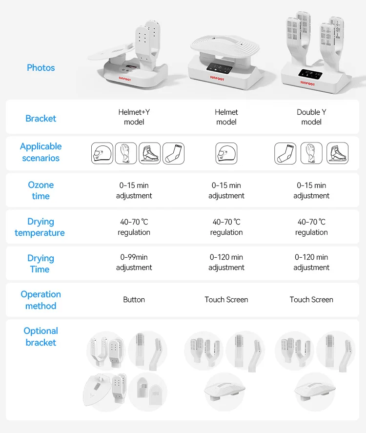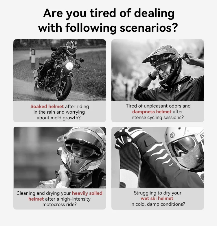 Your sneakers are still wet when you put them on. Not a great start and your motivation is gone...Our dryer has a powerful drying effect, with adjustable temperatures from 40℃ to 70℃. Accurate temperature control prevents overheating and deformation, extending the lifespan of the helmet.