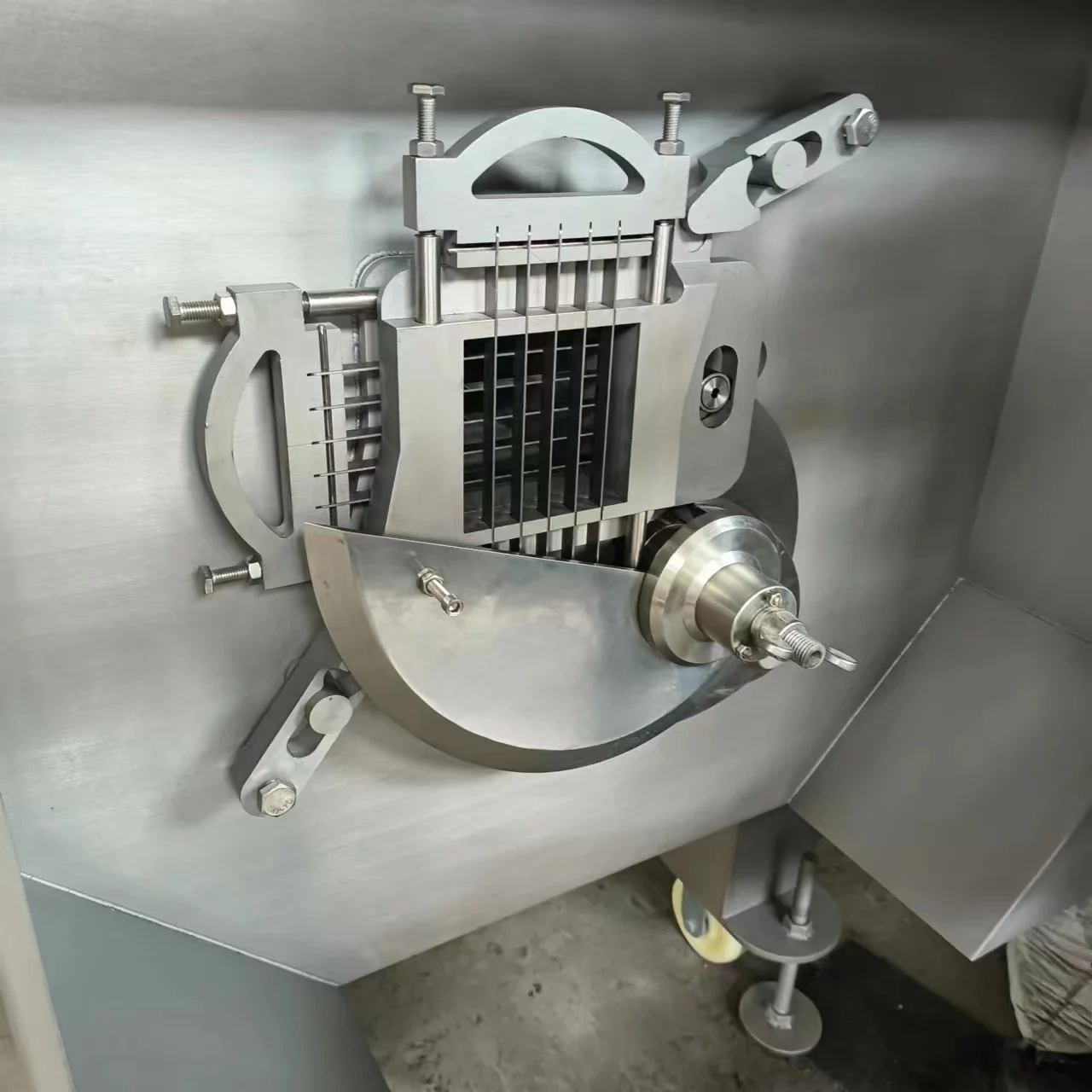 Raw materials such as frozen meat (3-5 degrees below zero), minced meat, and fat are cut into diced meat. The optimized hygienic design, the casing and the cutting blade are made of stainless steel. The cutter adopts double-edged cutting and has high working efficiency. It is an essential equipment in meat processing.