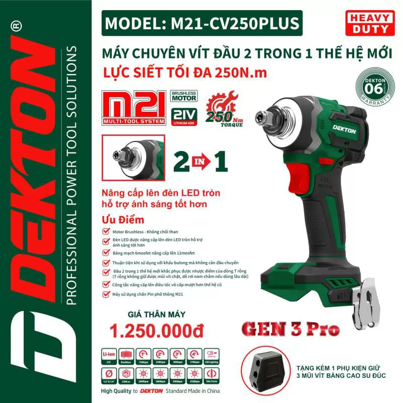 Chuyên vít Dekton M21-CV250G3 mẫu mới Gen 3 Pro – Chân pin phổ thông