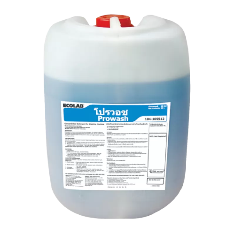 Prowash thích hợp để giặt tất cả loại vải khi được sử dụng kết hợp tạo sự liên kết cùng với chất tạo kiềm Ecolab. Lý tưởng khi áp dụng cho bệnh viện và nhà máy dệt vải. Prowash chứa các chất hoạt động bề mặt anionic và không anionic di động đậm đặc được phát triển đặc biệt để bổ sung kiềm khi áp dụng cho tất cả các hệ thống giặt theo mẻ liên tục và các máy giặt vắt thông thường, đồn...Shipping/Vận chuyển