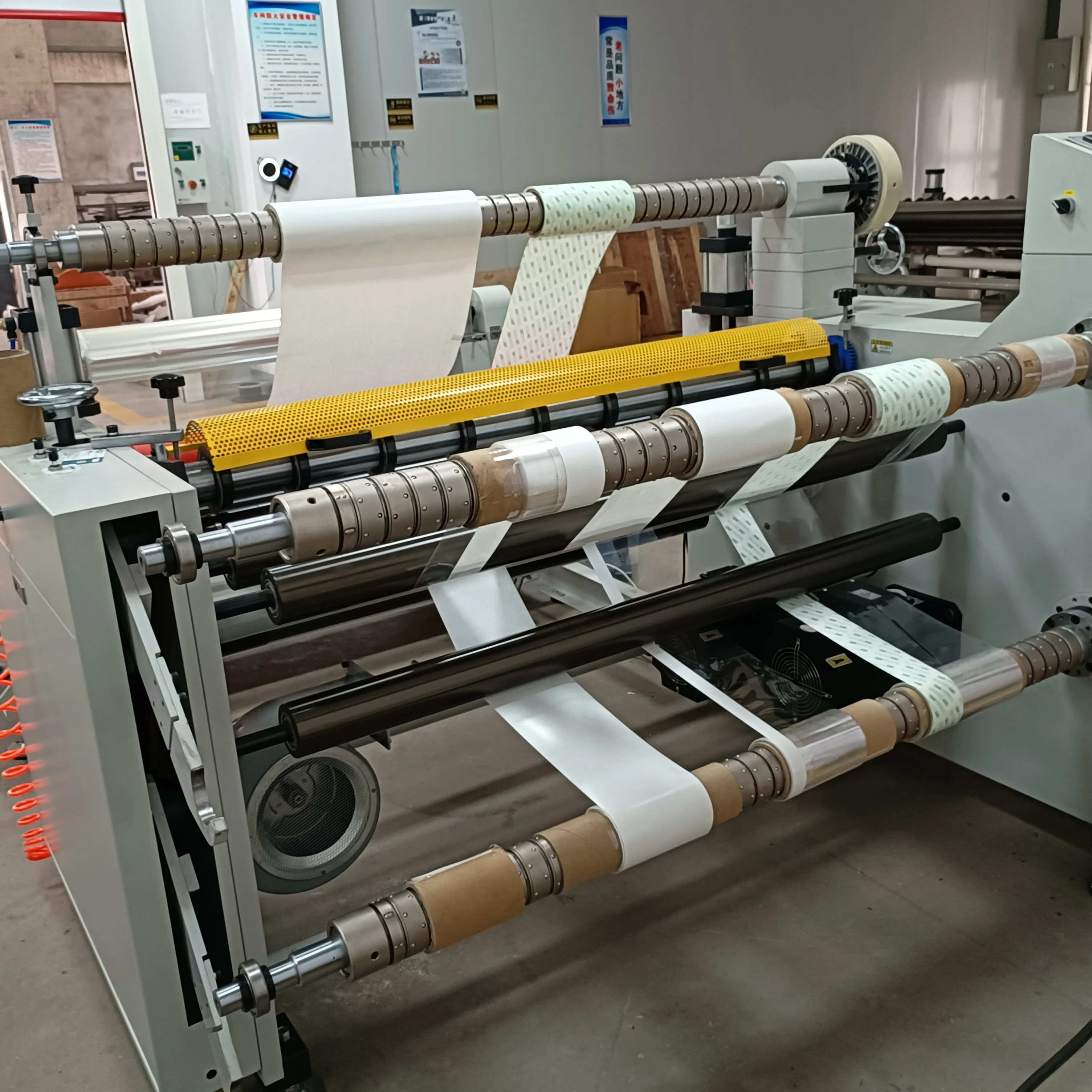 foil, OPP, PE, PVC, sheet, cloth, etc. This machine is widely used in the industries such as printing, packing, electronics,