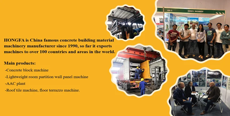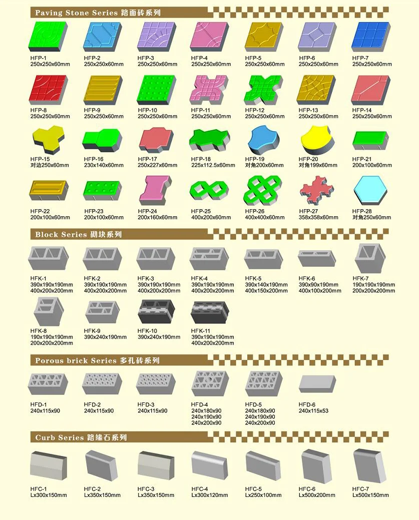 HONGFA QT12-15F is one of patent products of our technical development, it is very hot-selling model worldwidely. Easy for operation and maintenance, applied for different types concrete block, solid/hollow/cellular masonry products, paving stones with or without face mix, garden and landscaping products, slabs, edgers, kerbstones, grass blocks, slope blocks, interlocking blocks,etc.Adding a fabric dispensing mechanism can also produce layered products.