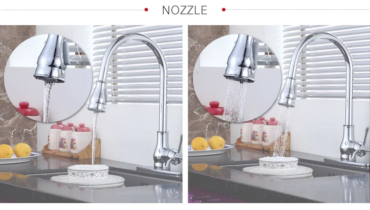 High Quality Pull Out Spray Kitchen Sink Faucet Mixer Tap With Pull Down Sprayer Ceramic Hotel Chrome Modern
