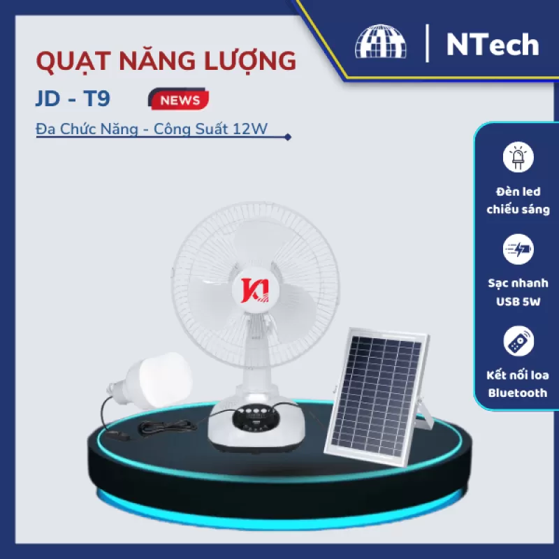 Quạt năng lượng mặt trời mini JD-T9 có thể kết nối bluetooth để phát nhạc. Cùng nhiều tính năng hiện đại khác. Gọi 0987 176 467 để có giá tốt.