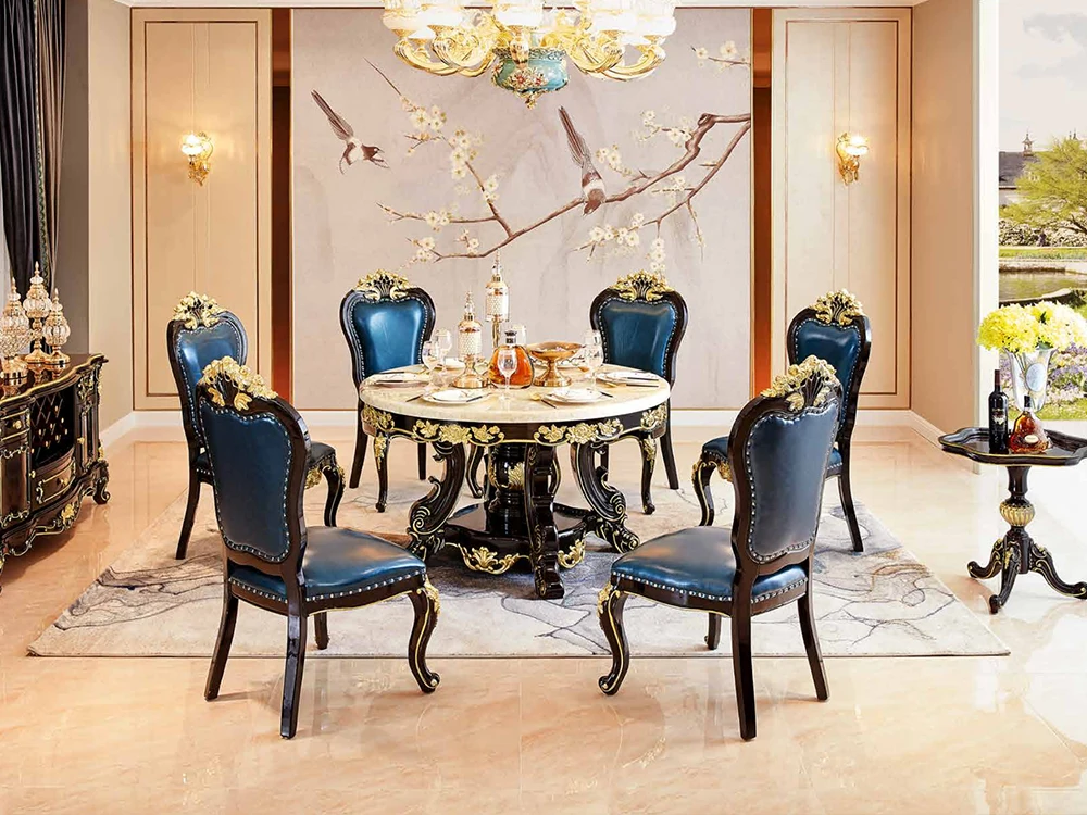 Royal Home Furniture Dining Room Chairs Modern Leather Rectangular Marble Dining Table