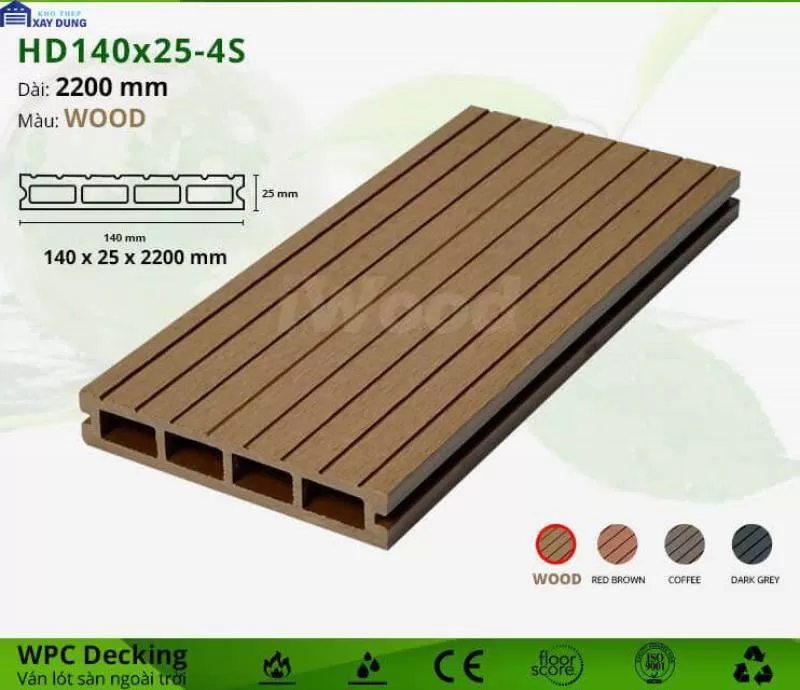 Tên thương hiệu: iWood Mã sản phẩm: HD140x25 Màu sắc: Red Teak Quy cách: 140×25 mm (Dài 2900 mm) Bảo hành: 3 năm