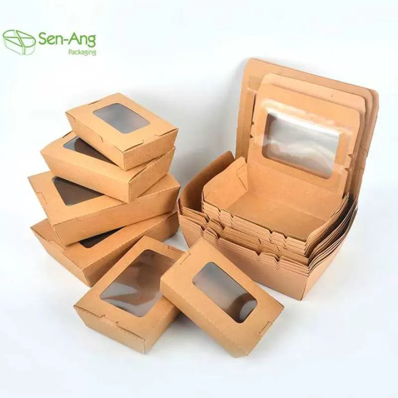 SenAng05 Best Selling Snack Cookie Fried Chicken Rectangle Take Way Lid 700Ml Brown Kraft Paper Box With Window