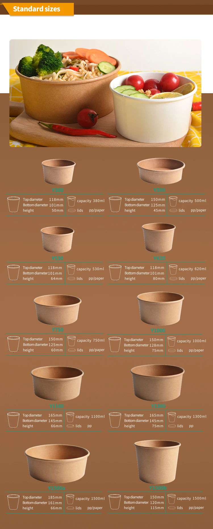Eco-friendly Kraft 500ml 750ml 1000ml 1100ml 1300ml Paper Salad Bowl With Lid Food Paper Bowl