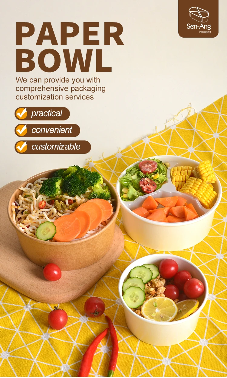 SenAng05 Promotion Wholesale Custom Kraft Brown Meal Box 1000Ml White Paper With Lid Salad Bowl