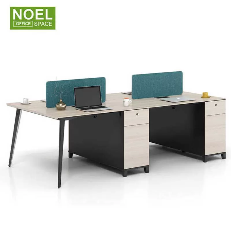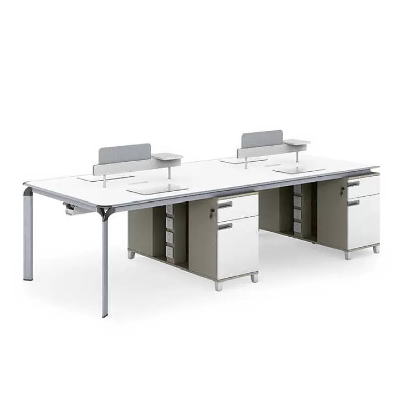 4 Person Cubicle Office Laptop Workstation with Aluminium Legs Sharing Cabinet Office Desk and Chair Set