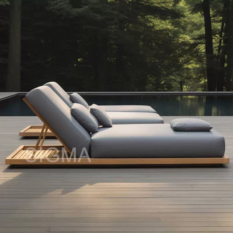 Adjustable Backrest Outdoor Teak Wooden Daybed Waterproof Cushion Foldable Patio Lounge Bed for Poolside Garden