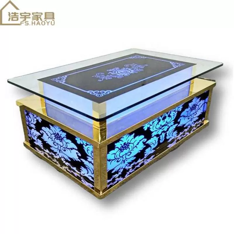 Luxury Stainless Steels + LED Light Bar Table Sets Modern Glass Club Table Bar Furniture Commercial Furniture