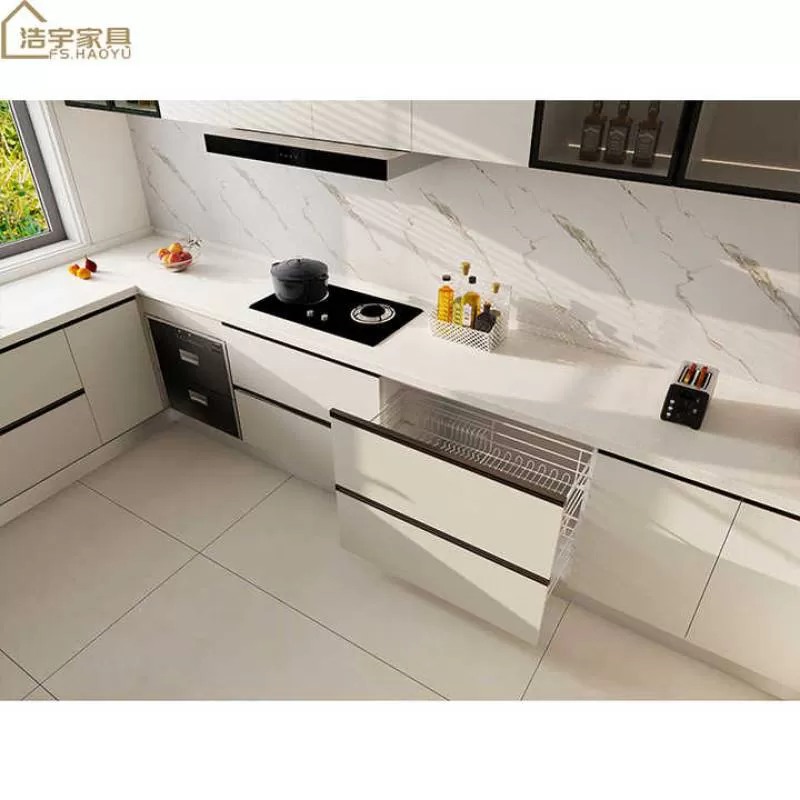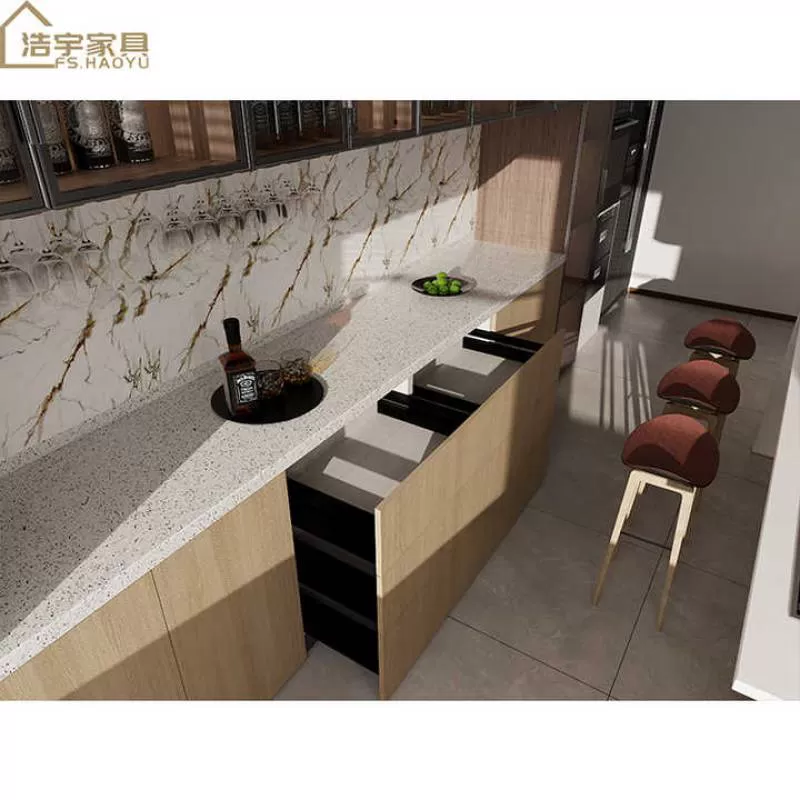 Custom Luxury Marble Sideboard Ready to Assemble Furniture Modern Designs Kitchen Cabinet Set High Gloss with Island Set