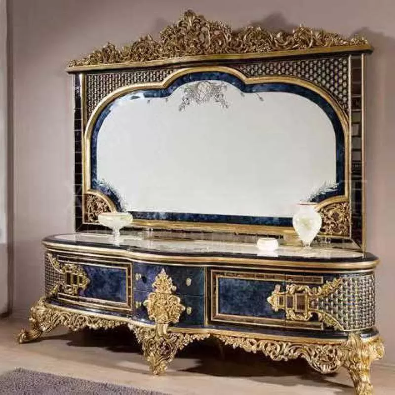 Classic Extendable Wooden Carved Dining Table Set for 10, Marble or Wood Top Dining Room Set