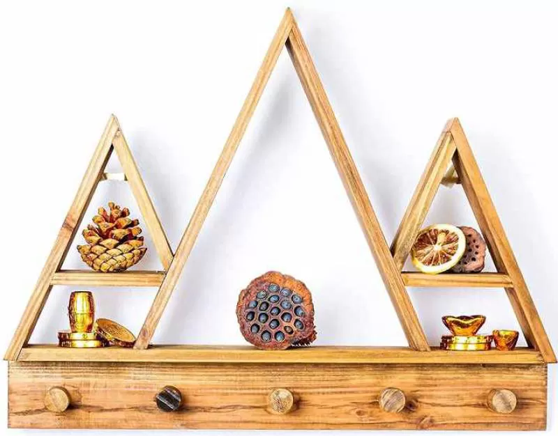 JUNJI Solid Pine Wood Dark Oak Colour Mountain Crystal Floating Wall Shelves Home Decor Wooden Wall Shelf