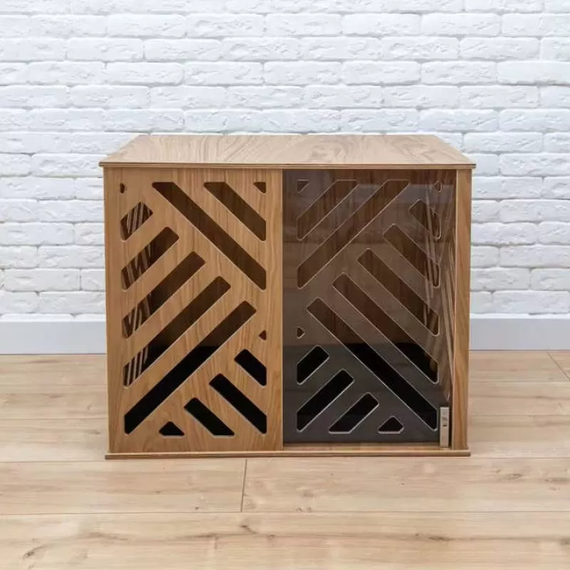 JUNJI Custom Indoor Dog Crate with Acrylic Sliding Door Wooden Dog House Serving As End Table for Pets
