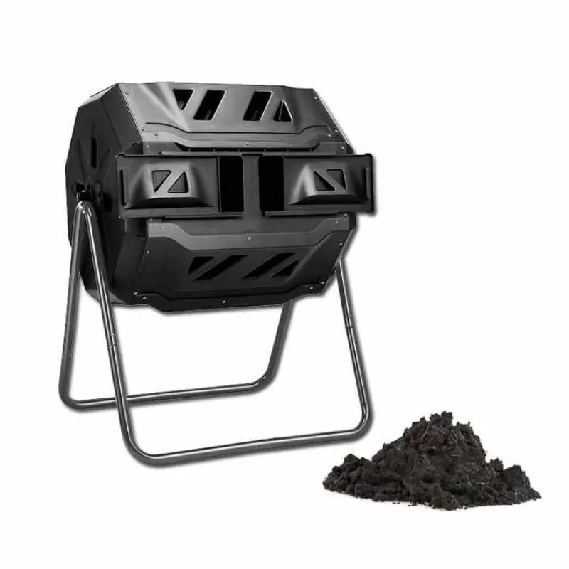 Garden Tumbling Composter Outdoor 43 Gallon Black Dual Rotating Batch Compost Bin
