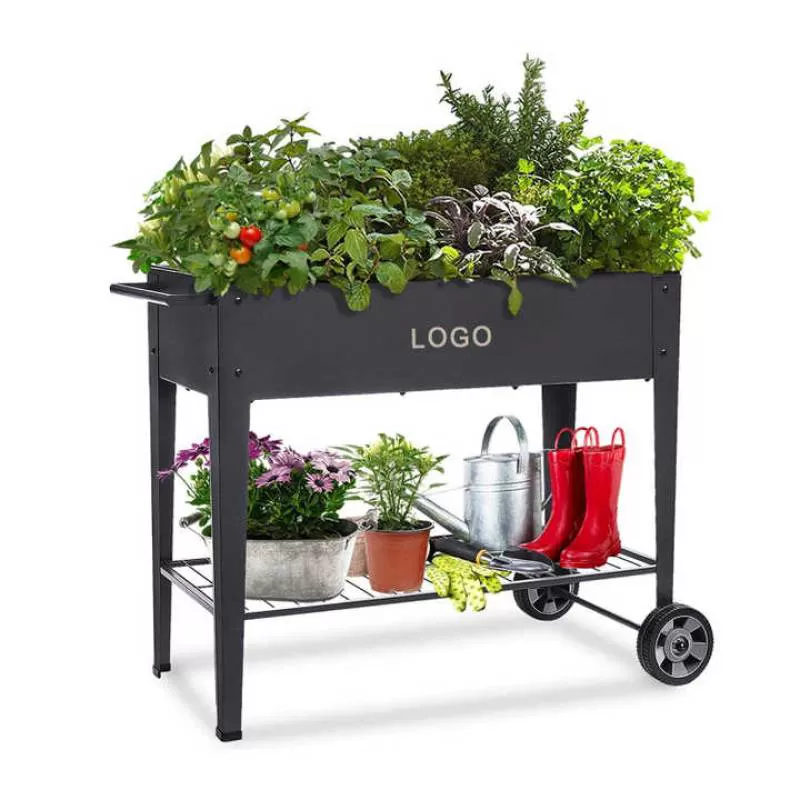 Multifunction Outdoor Metal Mobile Elevated Planter Box Raised Garden Bed Box With Wheels