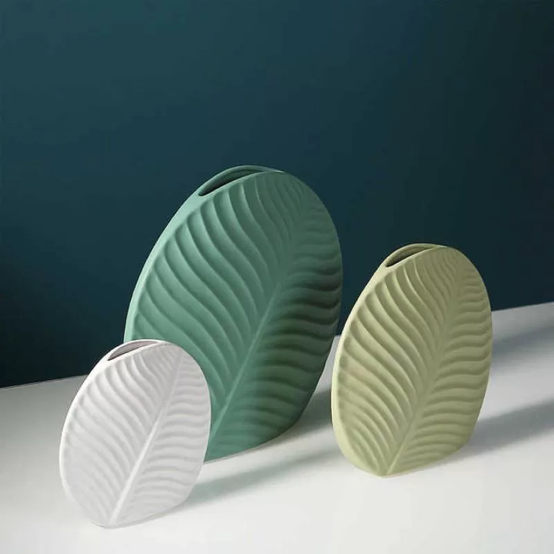 Minimalist Style Leaf Shape Vase Office Ornaments Flat Ceramic Vase for Dried Flowers