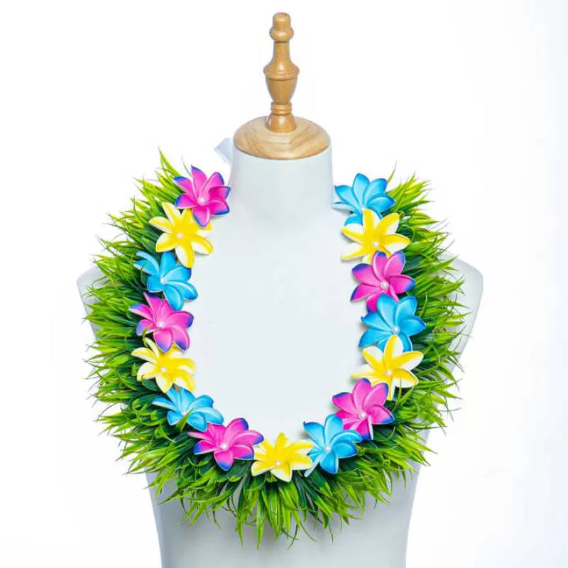 Artificial Silk Grass of Spring Foam Plumeria Short Lei Hawaii Flower Necklace Festival Neck Ring Party Wreath