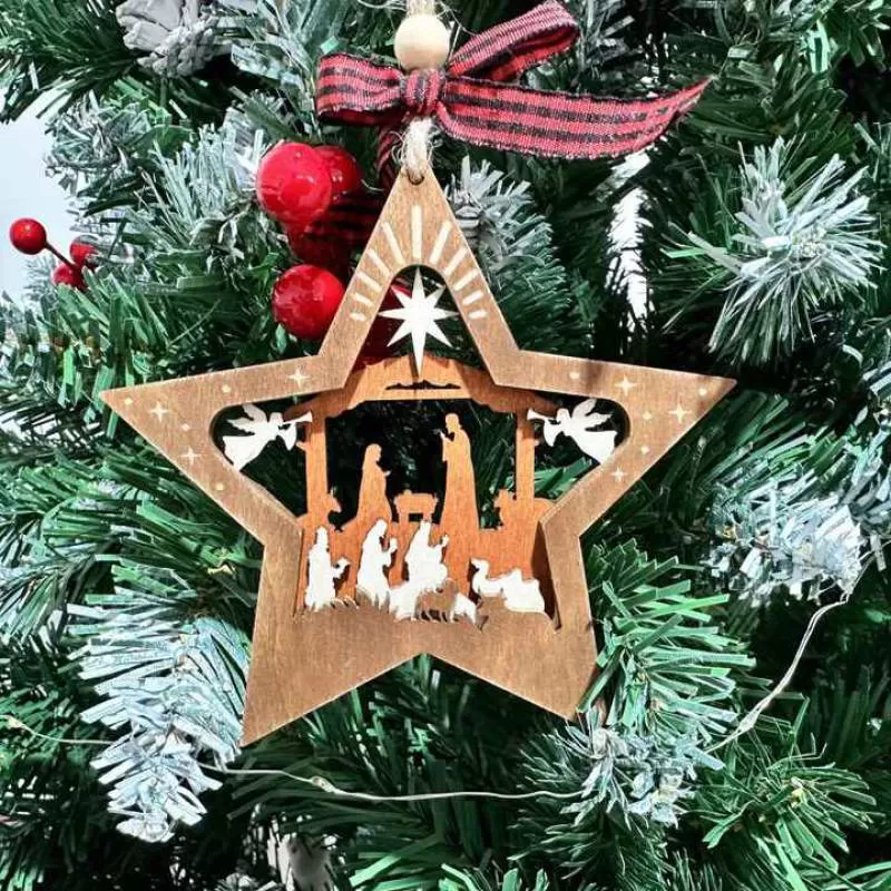 Wooden Nativity Creative Christmas Tabletop Scene Decoration Diy Craft Religious Pendant