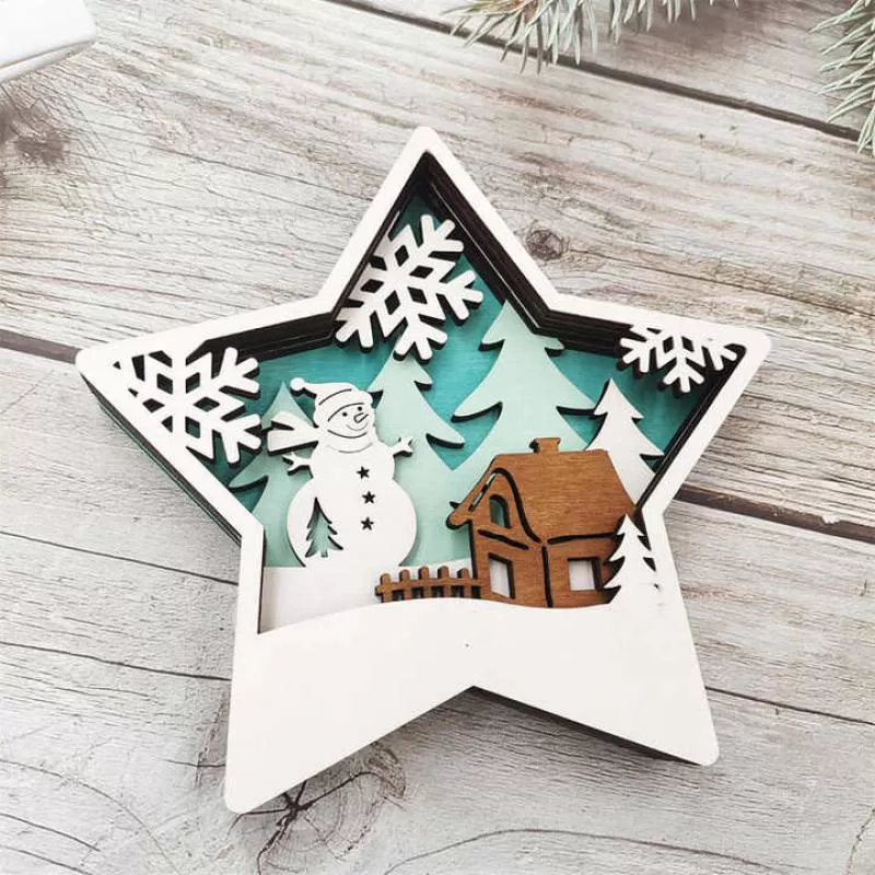 DIY Christmas Hanging Decoration Creative Hollow Reindeer Bear Santa Claus Snowman Wooden Craft Star Shape Ornament