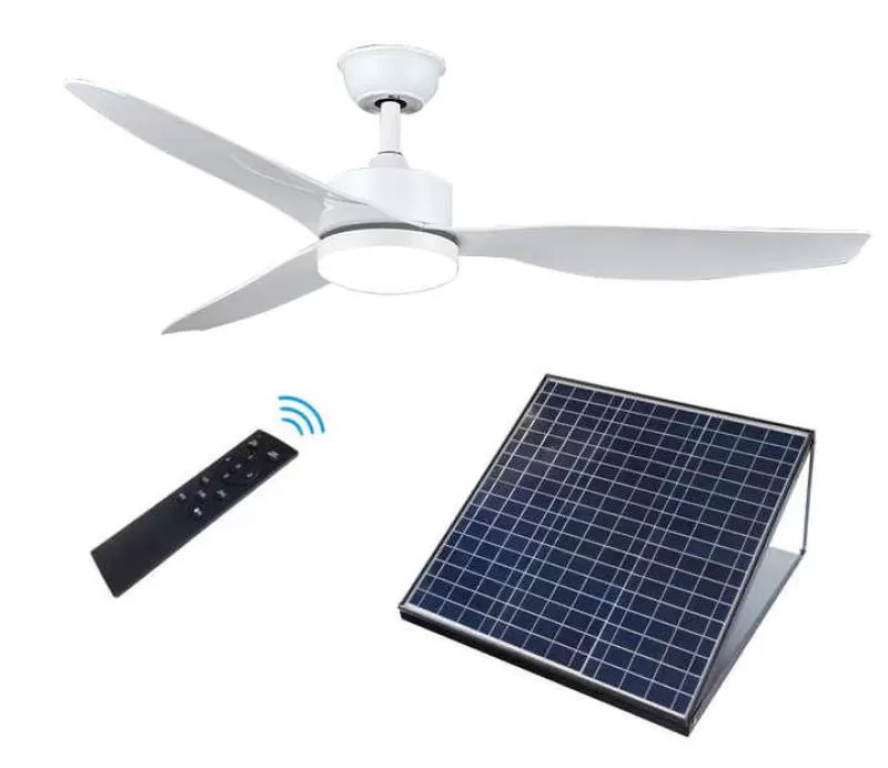 52 Inch DC Solar Ceiling Fan Aluminum Panel with Lights Renewable Energy Fan Lamp Solar Fan