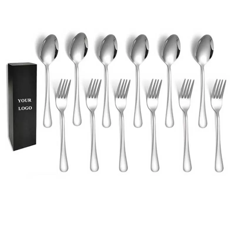 12 Pieces Forks and Spoons Metal Teaspoons Coffee Spoon Set Stainless Steel Flatware Wedding Cutlery Silverware Set Service 6