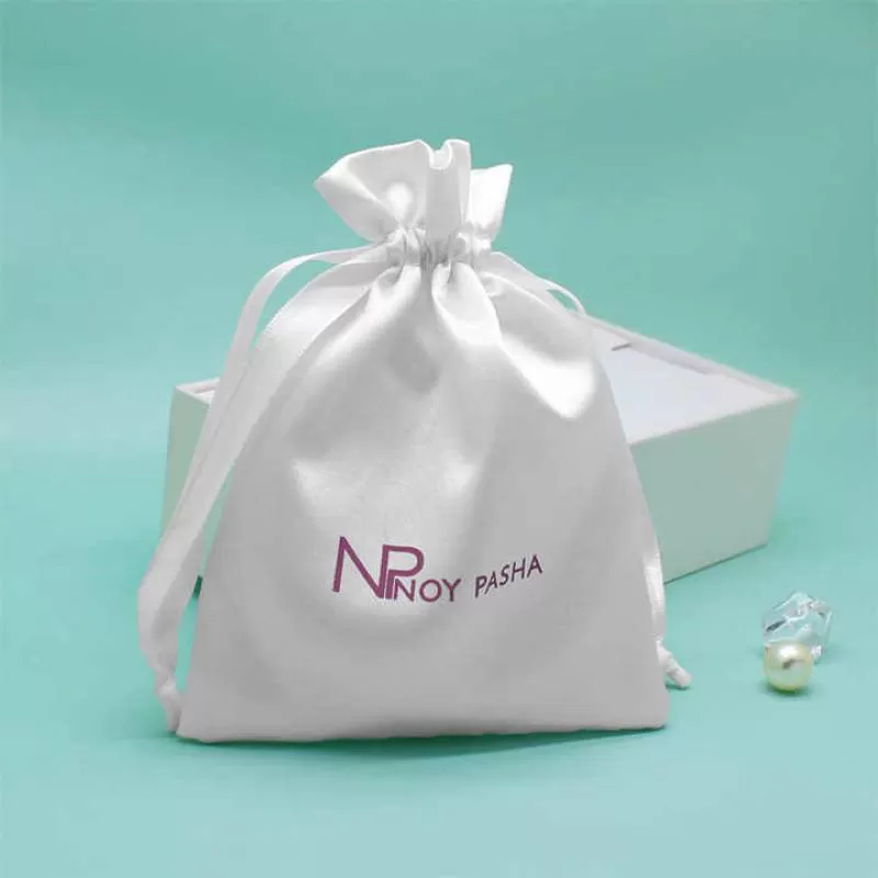 Reuse Packaging Jewelry Gift Satin Pouch Bag Custom Logo Size and Color Satin Silk Drawstring Bag