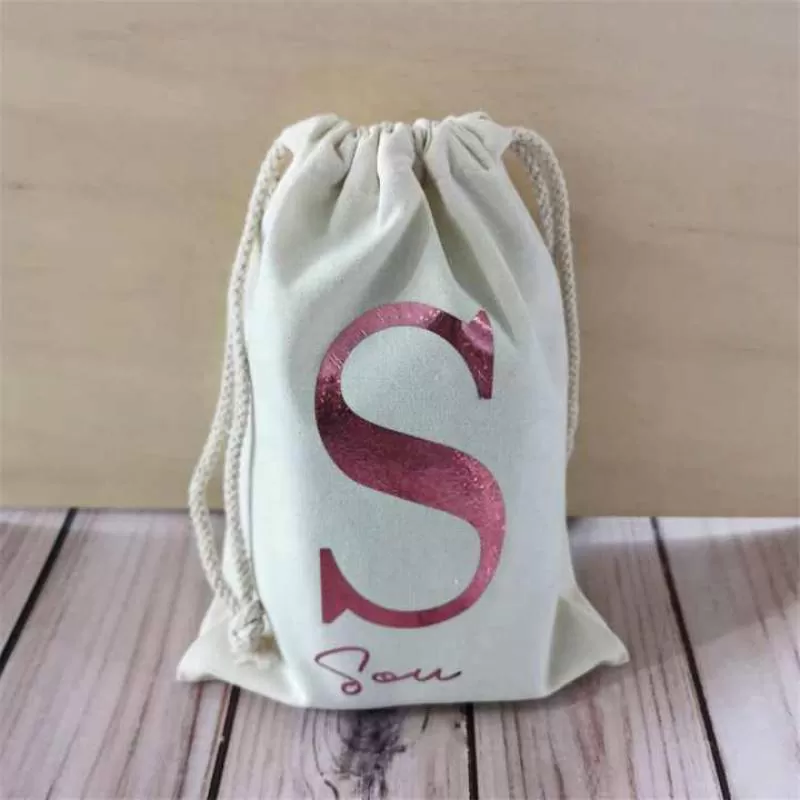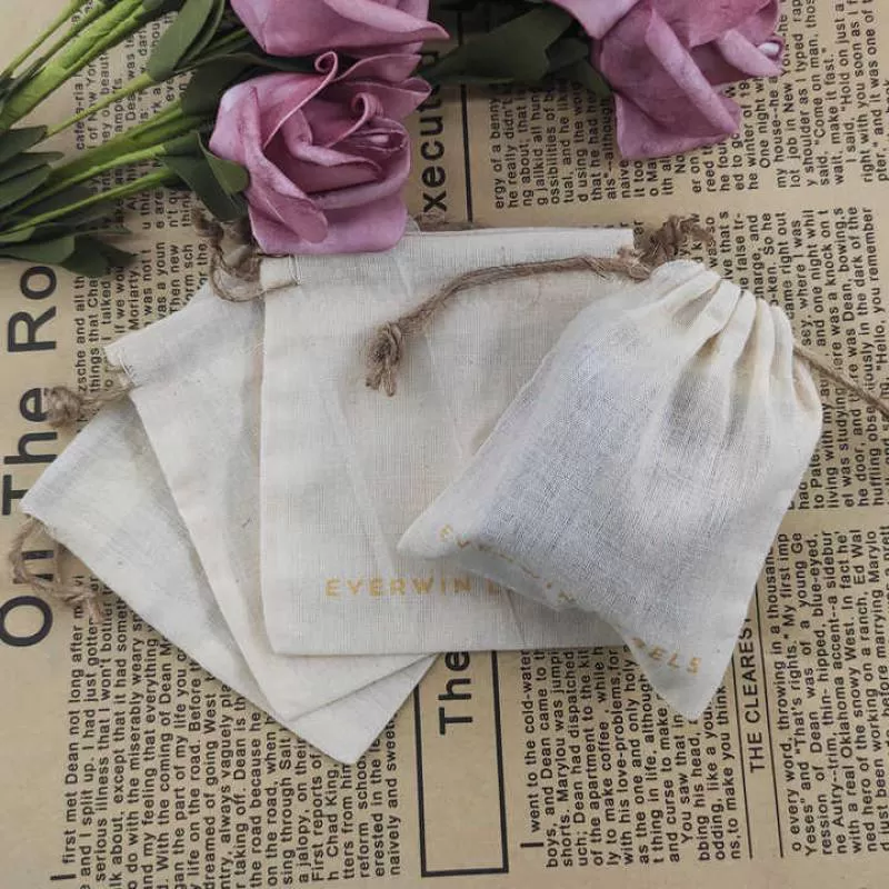 Custom Logo Cotton Drawstring Bags Recyclable Canvas Muslin Packaging for Jewelry Candles Crafts