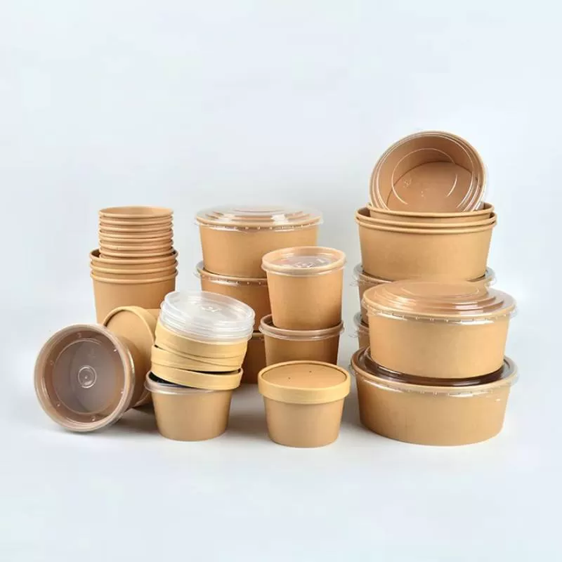 SenAng07 Hot Selling With Takeout Take Way Kraft Salad Away Pack Cup Bucket Lid Square Soup Packing Paper Bowl