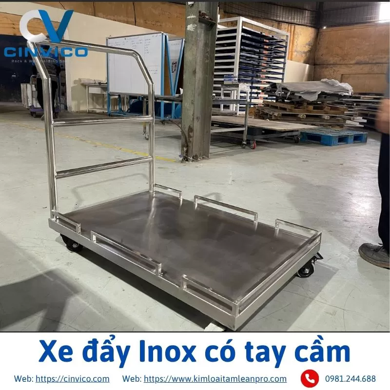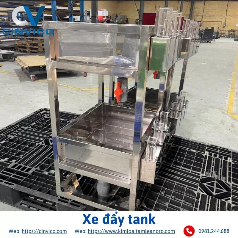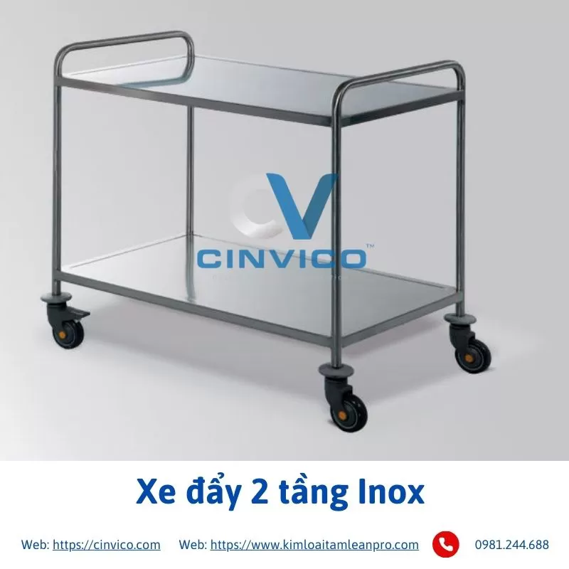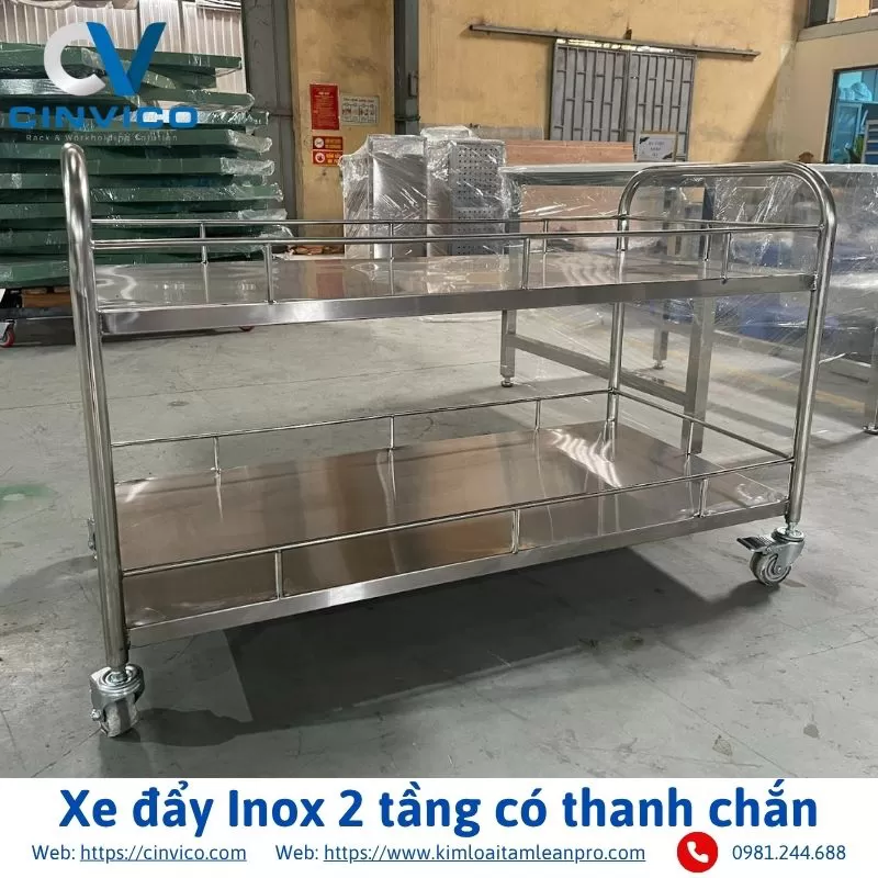 Xe đẩy 2 tầng bằng Inox sản xuất theo yêu cầu, giá rẻ, chất lượng