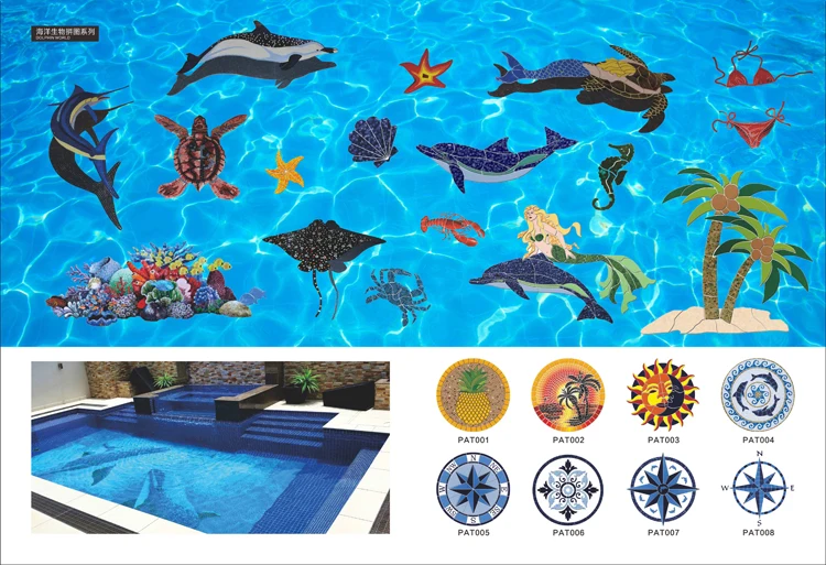 New Design Pattern Mosaic Pool Tiles for Swimming Pool Mosaic Bath Hotel Spa Pool Small Grain Printed Ceramic Tile