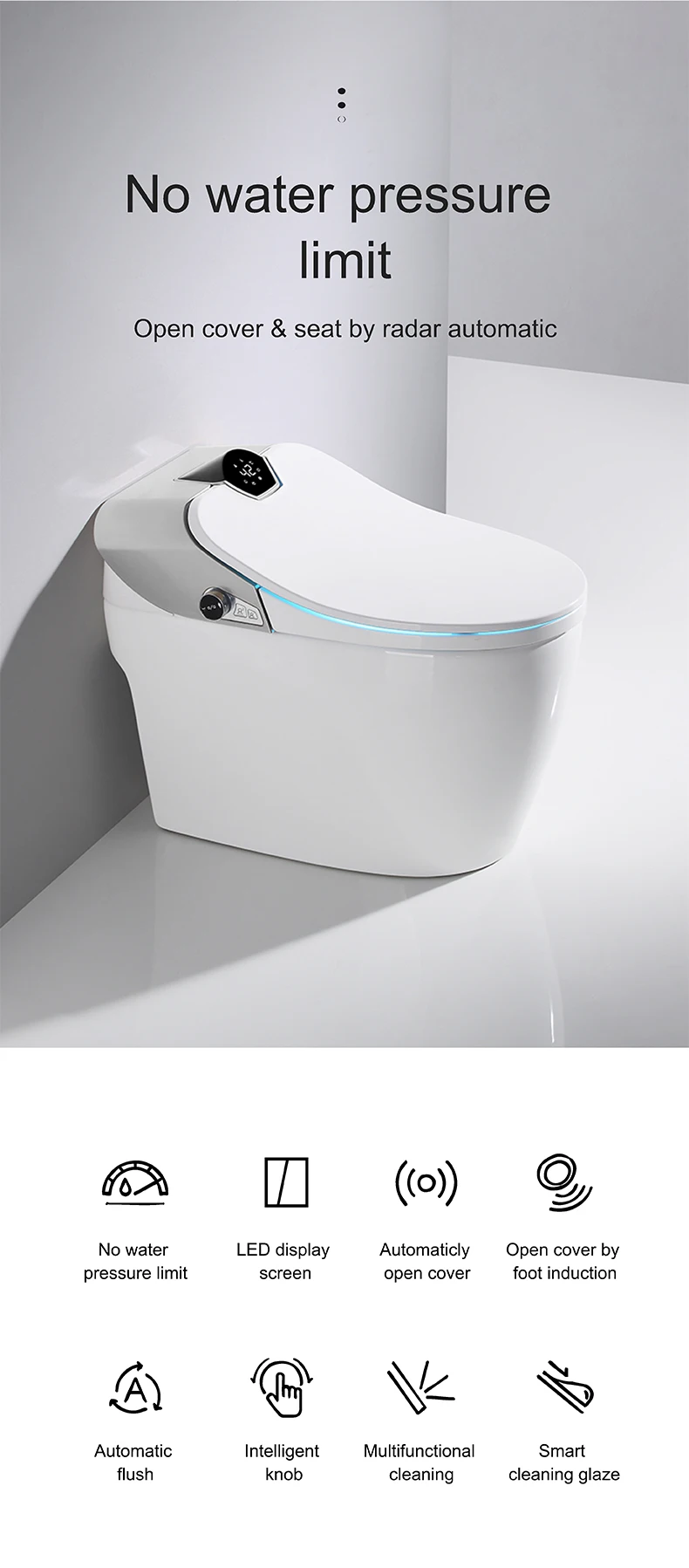 Feature | 1. Automatic open cover 2. No water pressure limit 3. Heated water instantly |