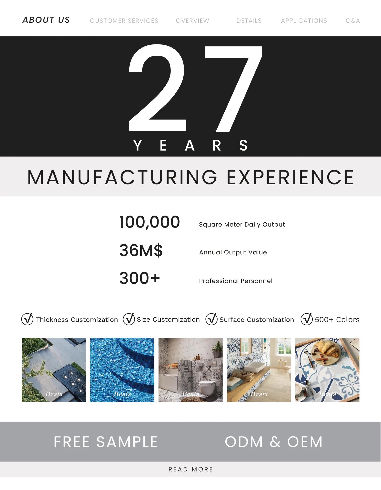 The surface of the product is treated with more than 7 special glaze-water processes, giving the product characteristics of wear resistance, anti-slip, high stain resistance, and easy cleaning.