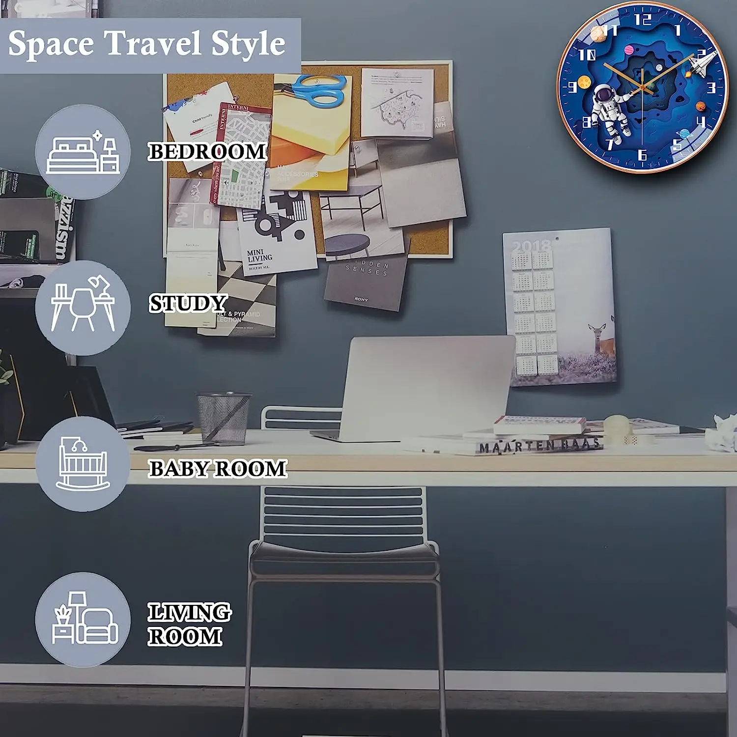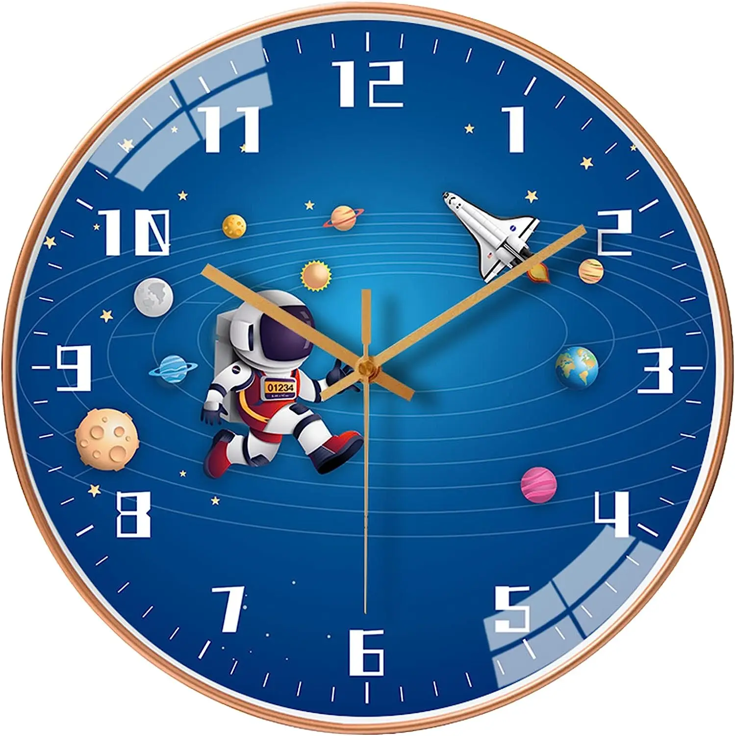 Space Travel Style Decor Children Wall Clocks for Living Room Silent Round Learning Clock Kids