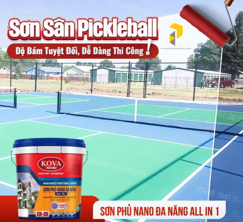 Bạn đang muốn cải tạo Sân Thể Thao (sân Pickleball, sân Tennis, sân Bóng Rổ...) của mình để mang lại trải nghiệm thi đấu tuyệt vời nhất? Sơn Kova Nano ALL IN1 là giải pháp tuyệt vời giúp sân pickleball của bạn luôn đẹp, bền và an toàn!