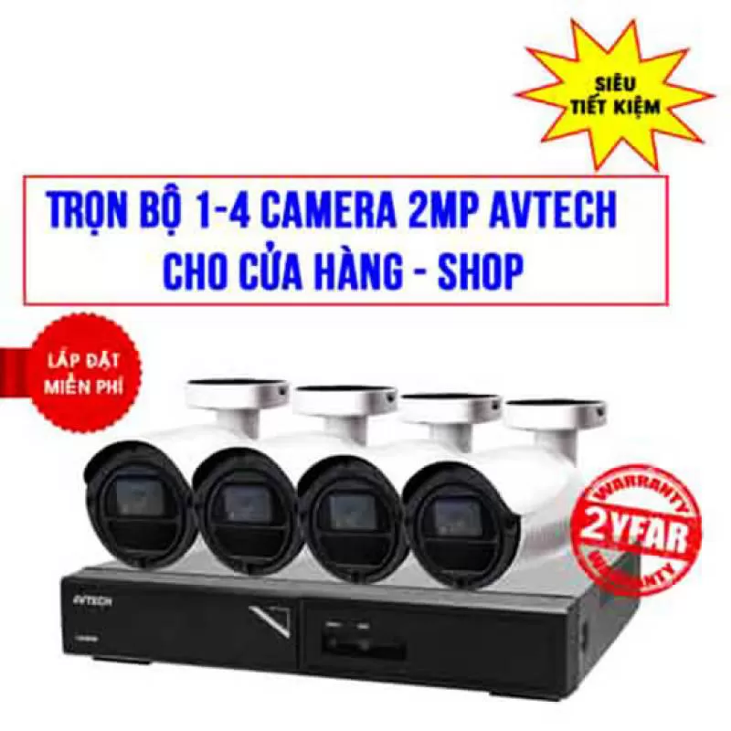 Trọn Bộ 1-4 Camera AVTECH 2 MP Giá Rất Rẻ Cho Cửa hàng, Shop