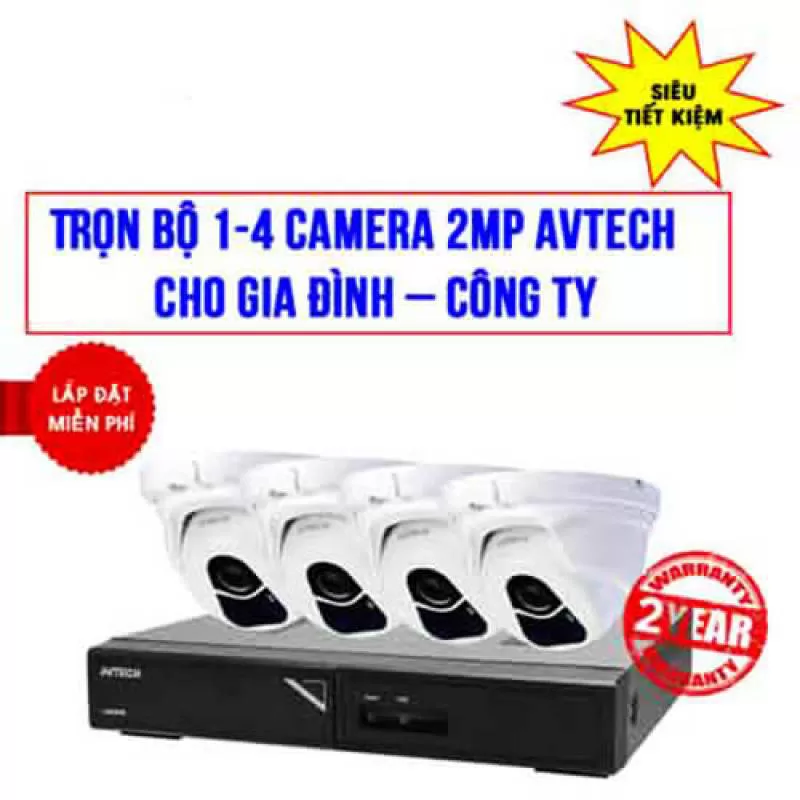 Trọn Bộ 1-4 Camera AVTECH 2.0MP Cho Công ty, Nhà Ở Giá Rẻ