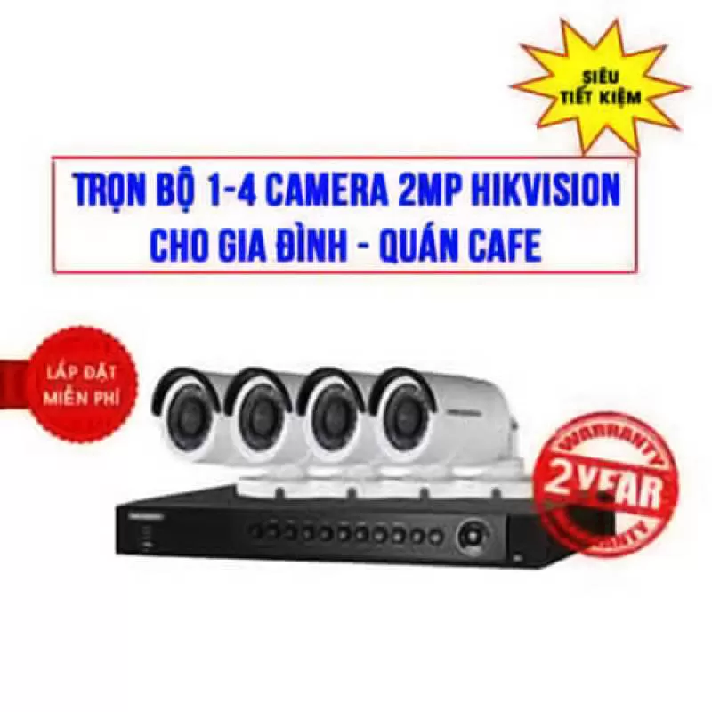 Trọn Bộ 1-4 camera Hikvision 2.0MP Cho Gia Đình - Quán cafe - Big Sale