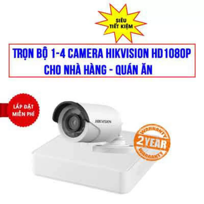 Trọn Bộ 1-4 Camera Hikvision 2MP HD1080P Cho Nhà hàng - Quán Ăn