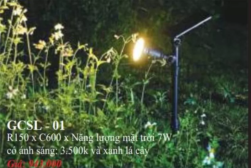 Trụ đèn NLMT ngoài trời GCSL-01 Thương Hiệu: Lightinh & Home, Kích thước: R150 x C600, Năng lượng mặt trời 7W Có ánh sáng: 3.500k và xanh lá cây