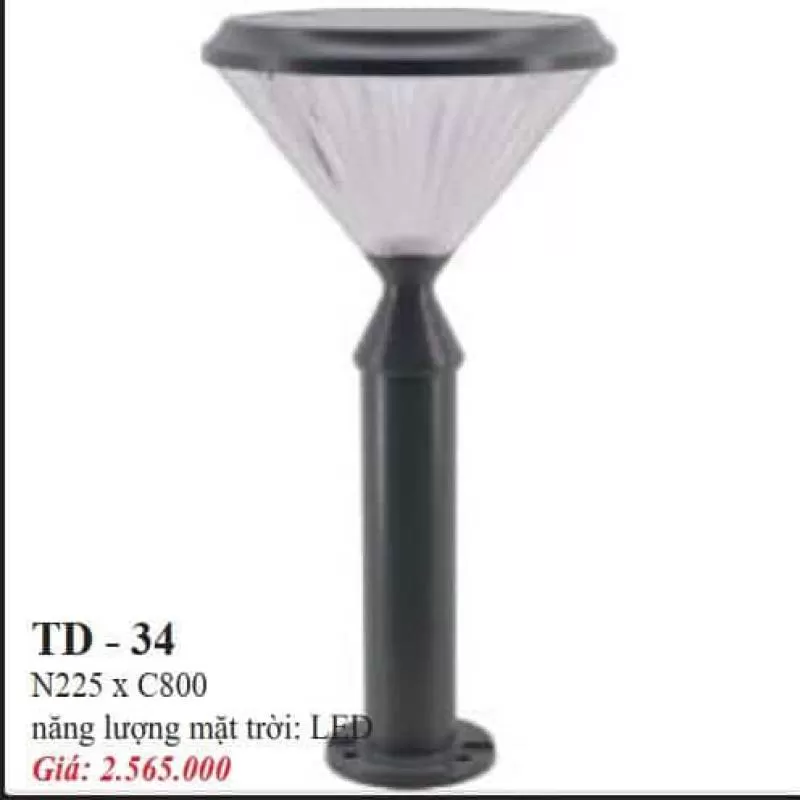 Trụ đèn NLMT ngoài trời TD-34 Thương Hiệu: Lightinh & Home, Kích thước: N225 x C800, Năng lượng mặt trời: LED, Bảo hành 12 tháng.